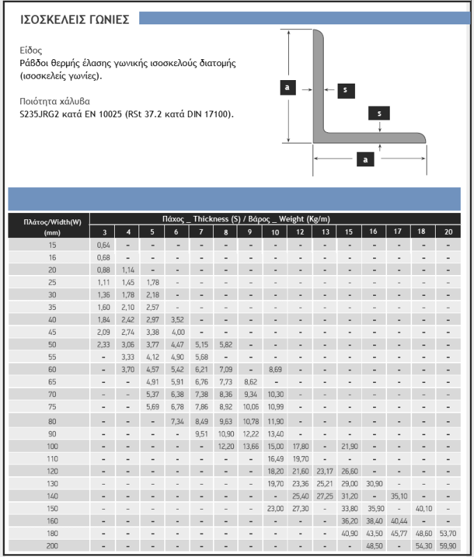Γωνίες μαύρες ή γαλβανιζέ σε ισοσκελείς ή ανισοσκελείς διαστάσεις